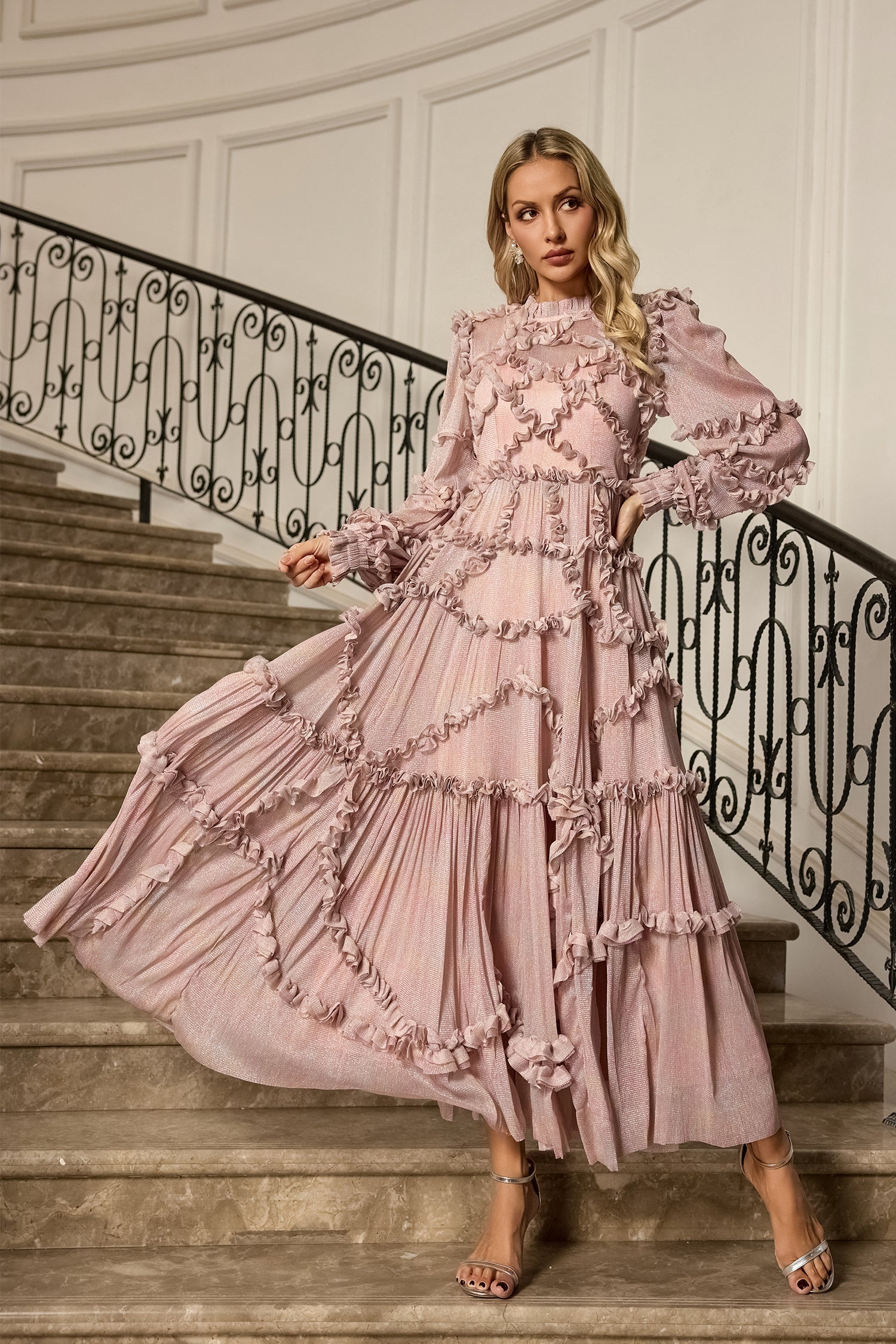 Introducing the Macie Pink Long Sleeve Maxi Dress, a perfect blend of grace and style. This enchanting dress features a soft pink hue that radiates charm and sophistication. The maxi length and long sleeves combine to create an elegant silhouette suitable for various occasions, from formal events to casual gatherings. With meticulous attention to detail and a flattering fit, the Remington dress is designed to enhance your wardrobe with a touch of timeless elegance. Embrace your femininity and make a fashion statement with this exquisite maxi dress that is bound to capture attention wherever you go.