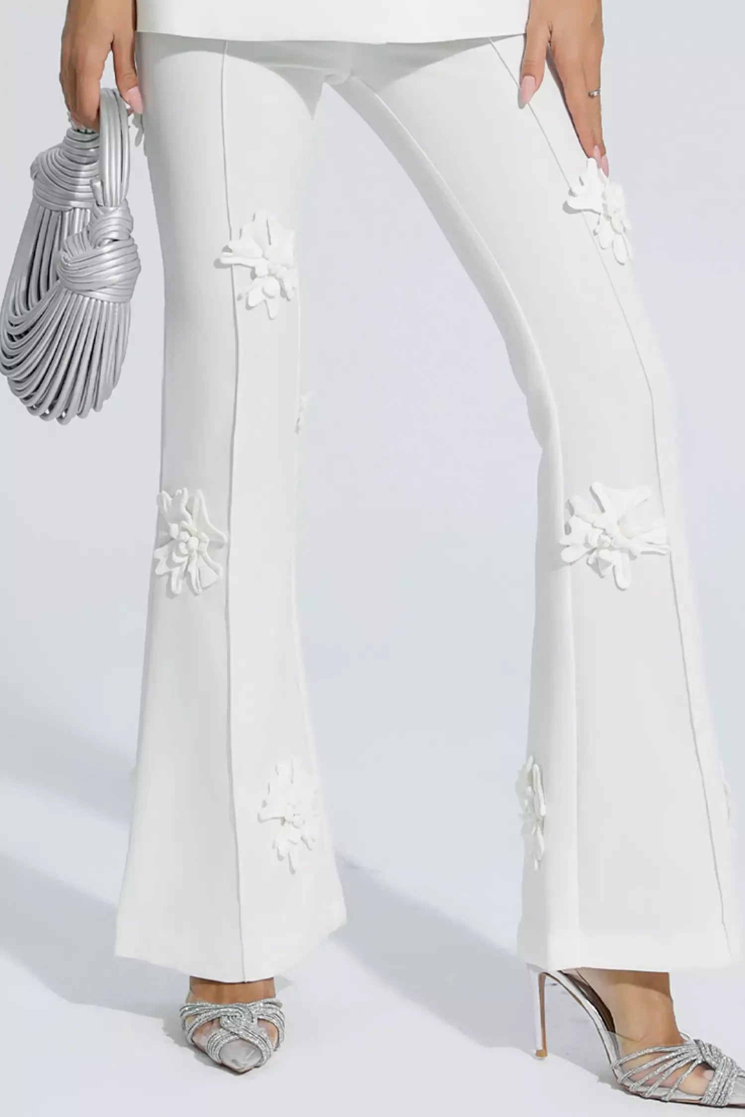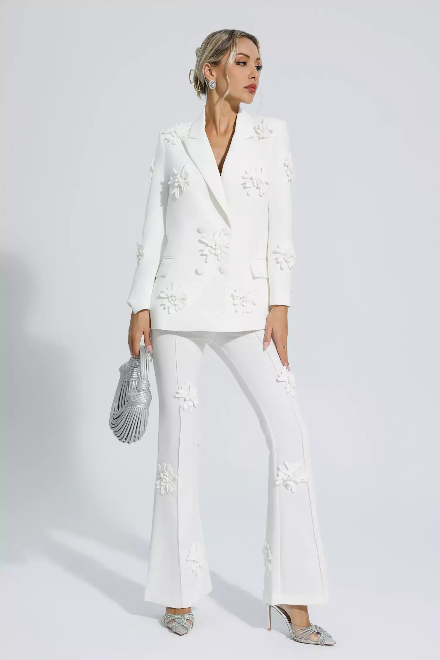 A set full of personality and unique charm is our new Ari White Jacquard Floral Blazer Set - it will make you look elegant. Jacquard flowers are decorated on the surface of refined suit fabrics, with a perfect sense of design. Bottoms are tailored and flared for a great drape. Whether it's your daily work or an important banquet, you'll look stunning in this set.