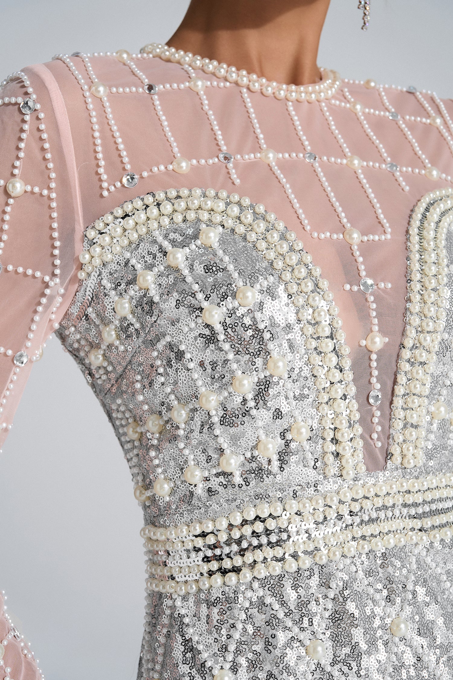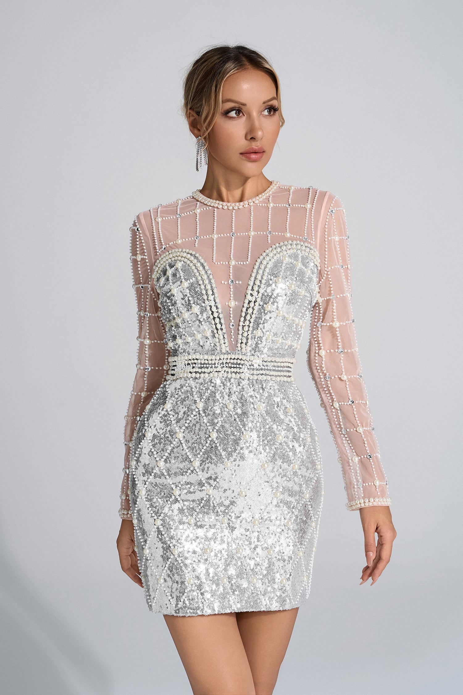 Introducing the Ayleen Silver Pearl Sparkle Mini Skirt, a dazzling piece that combines sophistication with glamour. This skirt features shimmering silver pearl embellishments that add a touch of elegance and sparkle to its mini length. Perfect for special occasions or a night out, this skirt effortlessly blends classic pearls with a hint of shimmer, creating a stunning and eye-catching look. Step into the limelight with confidence and style in this exquisite mini skirt that promises to elevate your outfit with its unique design and radiant allure.