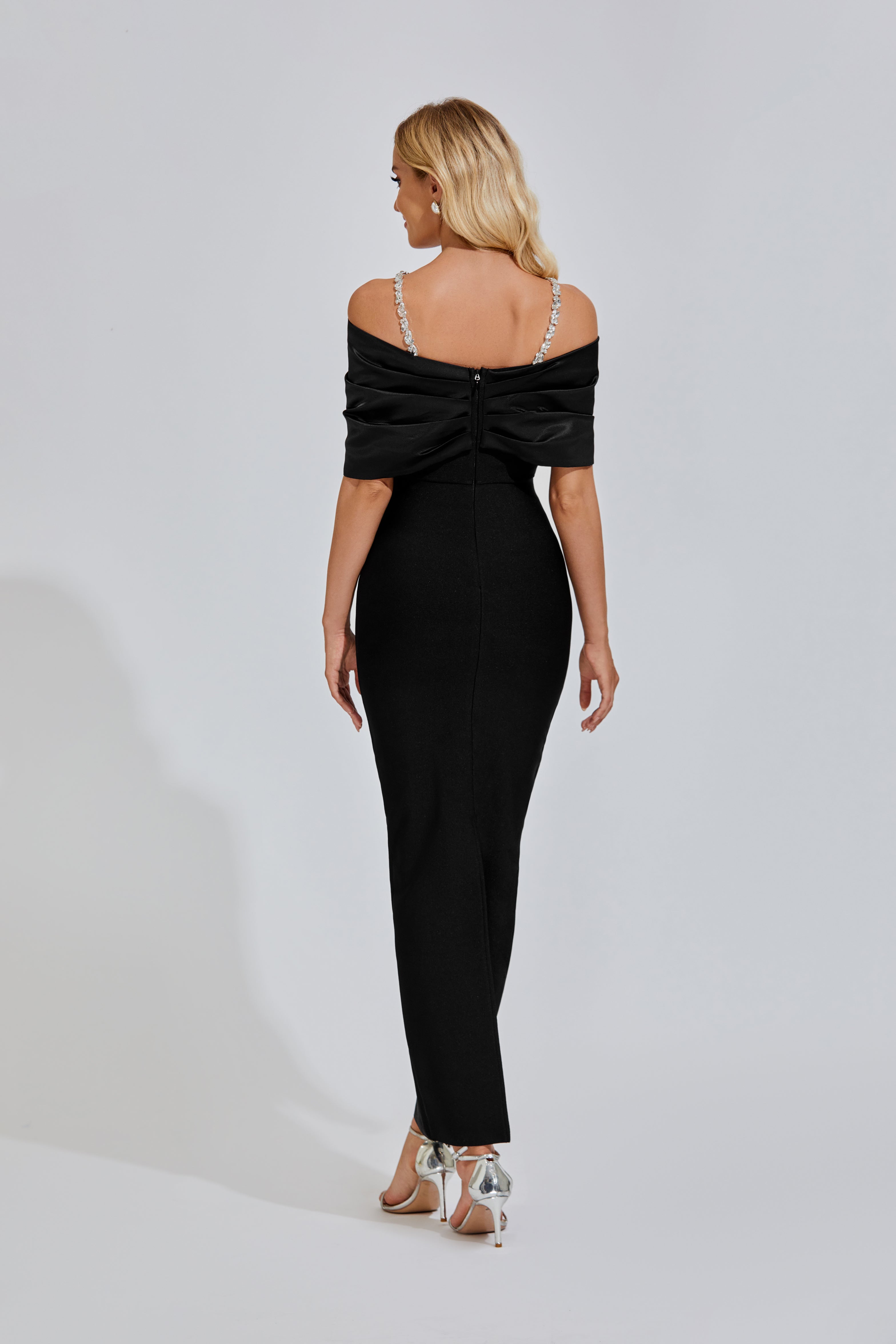 Step into the realm of elegance and allure with the Khaleesi Black Diamond Maxi Dress. This enchanting garment embodies sophistication and glamour, designed to turn heads at any special occasion. The deep black hue exudes timeless class, while the intricate diamond detailing adds a touch of luxury and sparkle. The flowing silhouette of the maxi dress drapes gracefully, emphasizing your figure with poise and style. Perfect for evening events and formal gatherings, the Khaleesi Black Diamond Maxi Dress is a statement piece that exudes confidence and sophistication, making you feel like royalty wherever you go.